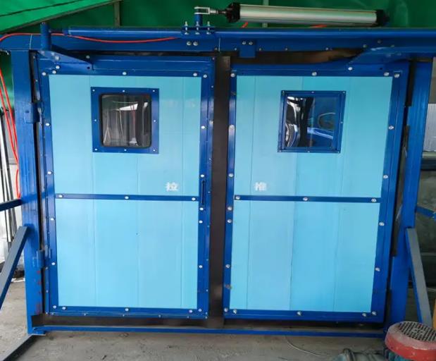 山東潤煤礦山設備生產廠家先將門扇龍骨焊接好,然后將拼接完成的聚氯乙烯防火板放入框架內,用鉆好孔的扁鐵覆蓋在聚氯乙烯板四周,然后用8.8級加強螺絲把聚氯乙烯防火板夾在固定板中間,完成以上工作后具有阻燃抗靜電功能的高分子復合材料風門基本完成了。